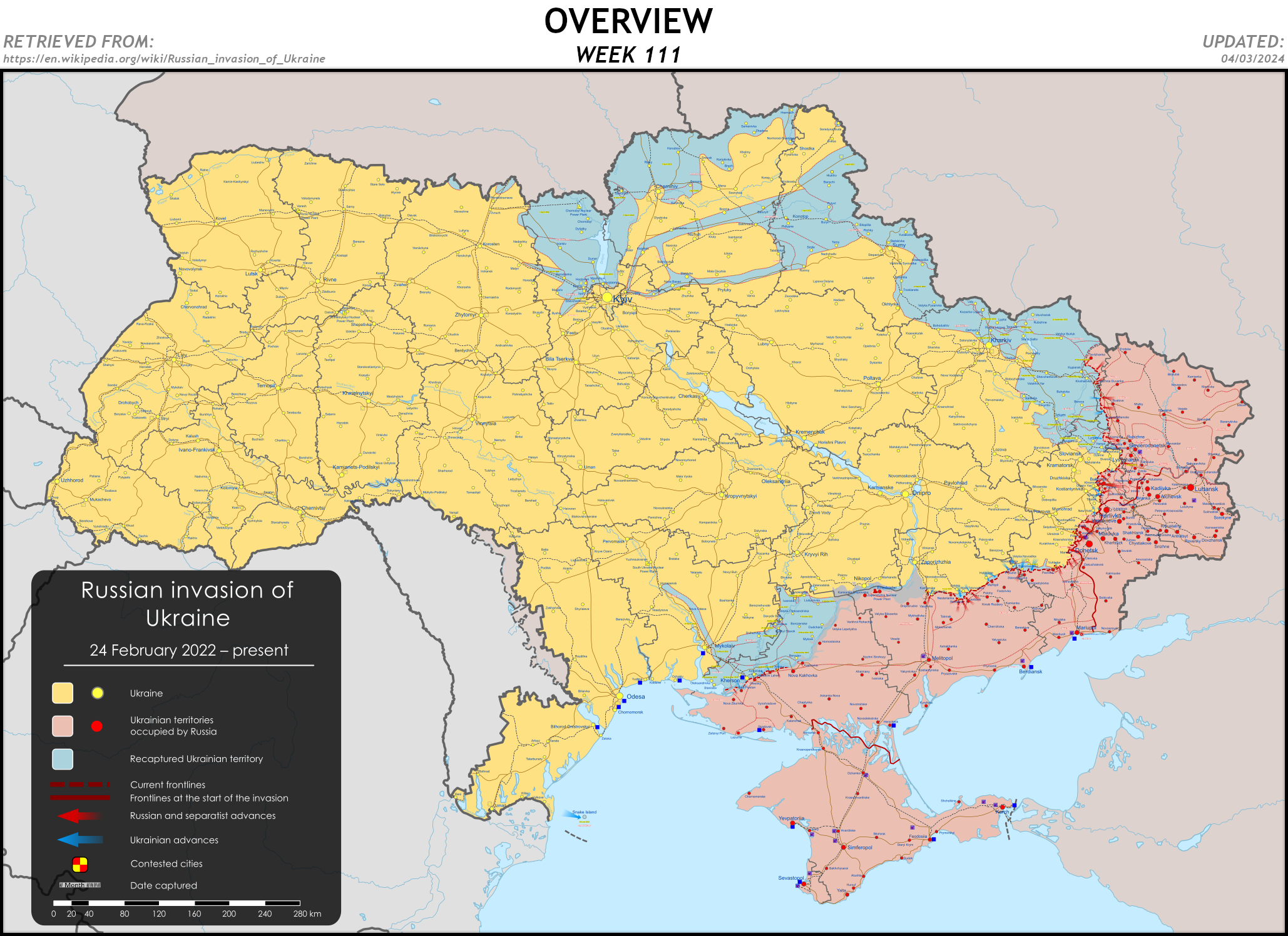 🟩 Limited action. Fighting reported around Krynky. Russian attacks southwest of Krynky made marginal gains.