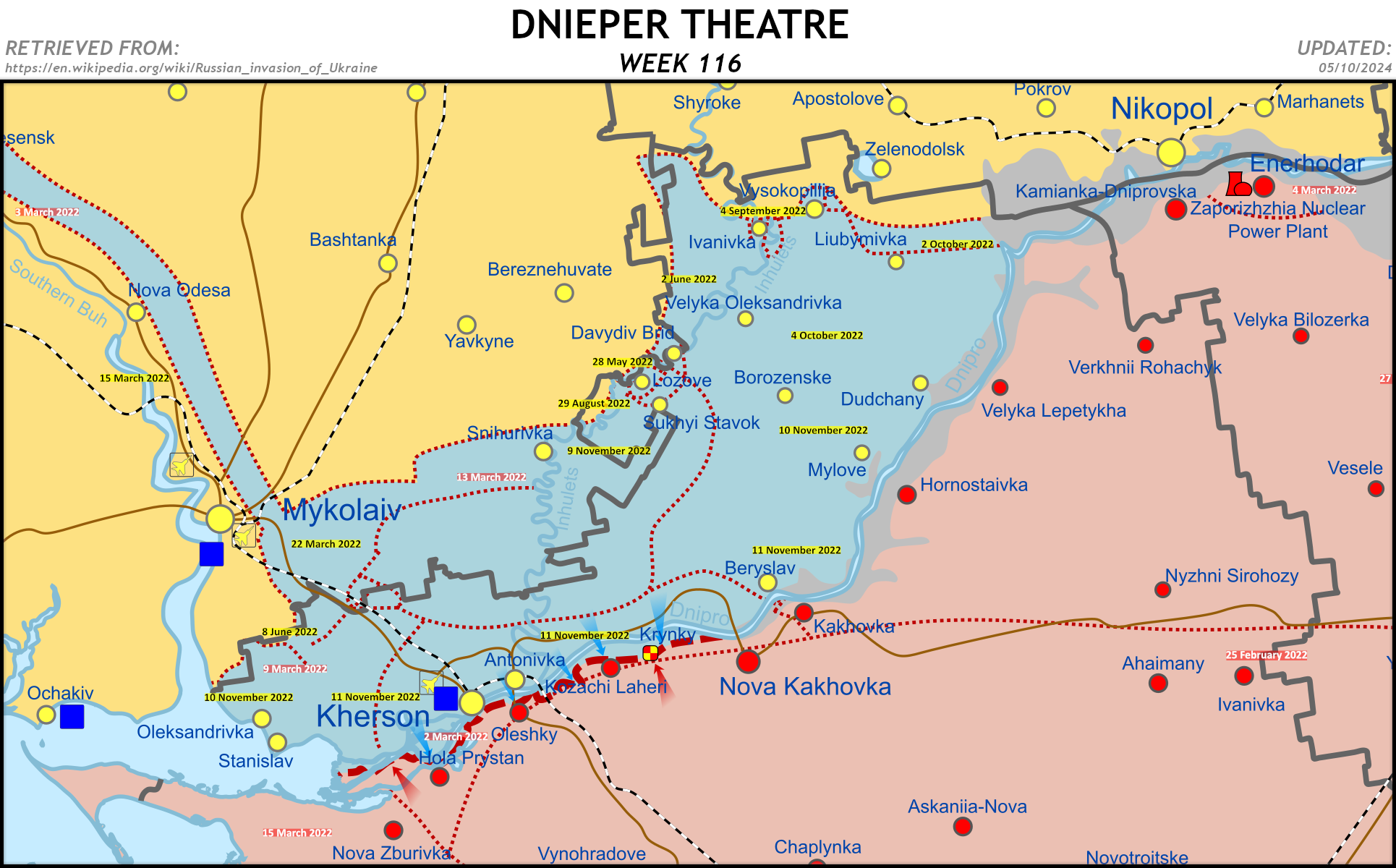 🟩 Limited action. Ukrainian counterassaults in Krynky made marginal gains. Russian attacks around Oleshky made marginal gains.