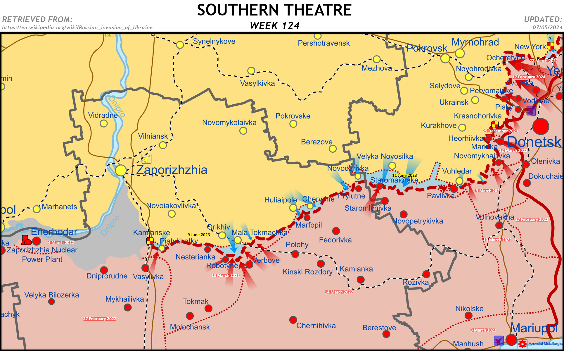 🟩 Limited action. Russian attacks south of Velyka Novosilka made marginal gains. Fighting reported around Orikhiv.